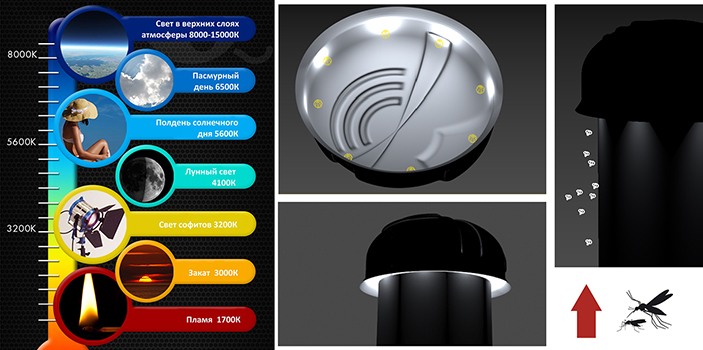 - Туннельный свет. Светодиодные элементы в зоне всасывания создают эффект лунного света, который комары используют в качестве навигации. Попадая в световой конус, насекомые неизбежно оказываются в ловушке.
