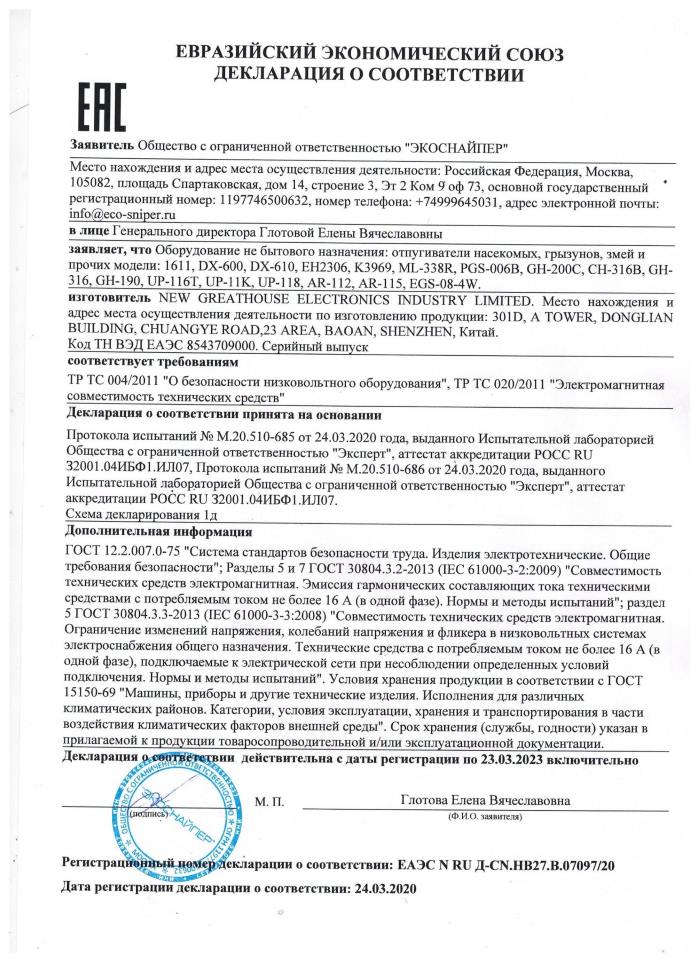Ультразвуковой отпугиватель «Экоснайпер UP-11K»